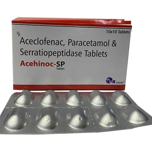 | 2 | ACEHINOC-SP | Aceclofenac 100 mg & Serratiopeptidase 15 mg Paracetamol 325 mg | DRUG | 10*10 ALU-ALU |