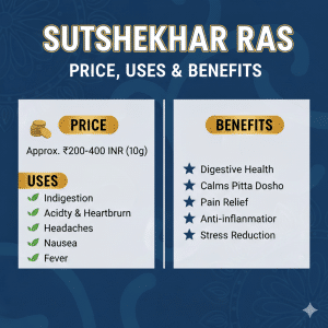 The price of Sutshekhar Ras in India varies depending on the brand, formulation quality, dosage form, and packaging, making it accessible across different budgets. Regular use under professional guidance may help improve appetite, relieve burning sensations, and promote overall gastrointestinal comfort. In this article, we talk about Sutshekhar Ras uses, benefits, ingredients, price in India, dosage, and safety information.
